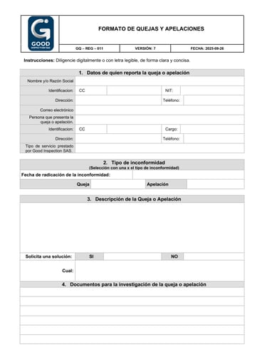Este canal está diseñado para que clientes, proveedores y colaboradores puedan presentar sus quejas, apelaciones o comentarios de manera sencilla y formal.